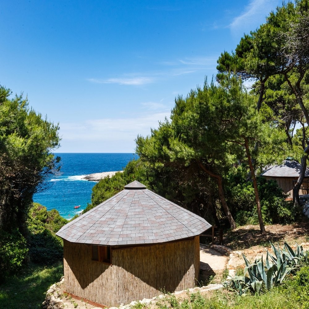 San Nicola, austera e superba nelle sue vesti storiche di abbazia fortificata; Capraia, l’eremita e regno dei capperi; il Cretaccio, di creta gialla, baluardo naturale a difesa degli approdi sulle isole; Pianosa riserva marina integrale e infine San Domino, ricoperta da una lussureggiante e profumata distesa di pini d’Aleppo. Proprio l’isola di San Domino, definita dai monaci benedettini “Orto di Paradiso” per la terra fertile, i fiori spontanei, i colori e gli odori mediterranei, i canti delle cicale, ospita il villaggio del Touring Club Italiano, affacciato sull’esclusiva Cala degli Inglesi. È un’isola dalla natura incontaminata, che potrete scoprire passeggiando nella pineta e pagaiando lungo la costa: a ogni angolo troverete suggestioni e incanti, tra acque limpide e trasparenti, coste frastagliate di cale, punte e scogli come quello dell’Elefante, chiamato in questo modo per la sua forma bizzarra, e i Pagliai, monoliti a forma di piramide somiglianti a mucchi di fieno. Le strutture del Villaggio, anch’esso immerso nella pineta, a poca distanza dal mare, includono la reception con servizio di custodia valori, ristorante, bar, angolo TV, anfiteatro con pista da ballo, area relax, boutique, giochi per bambini.